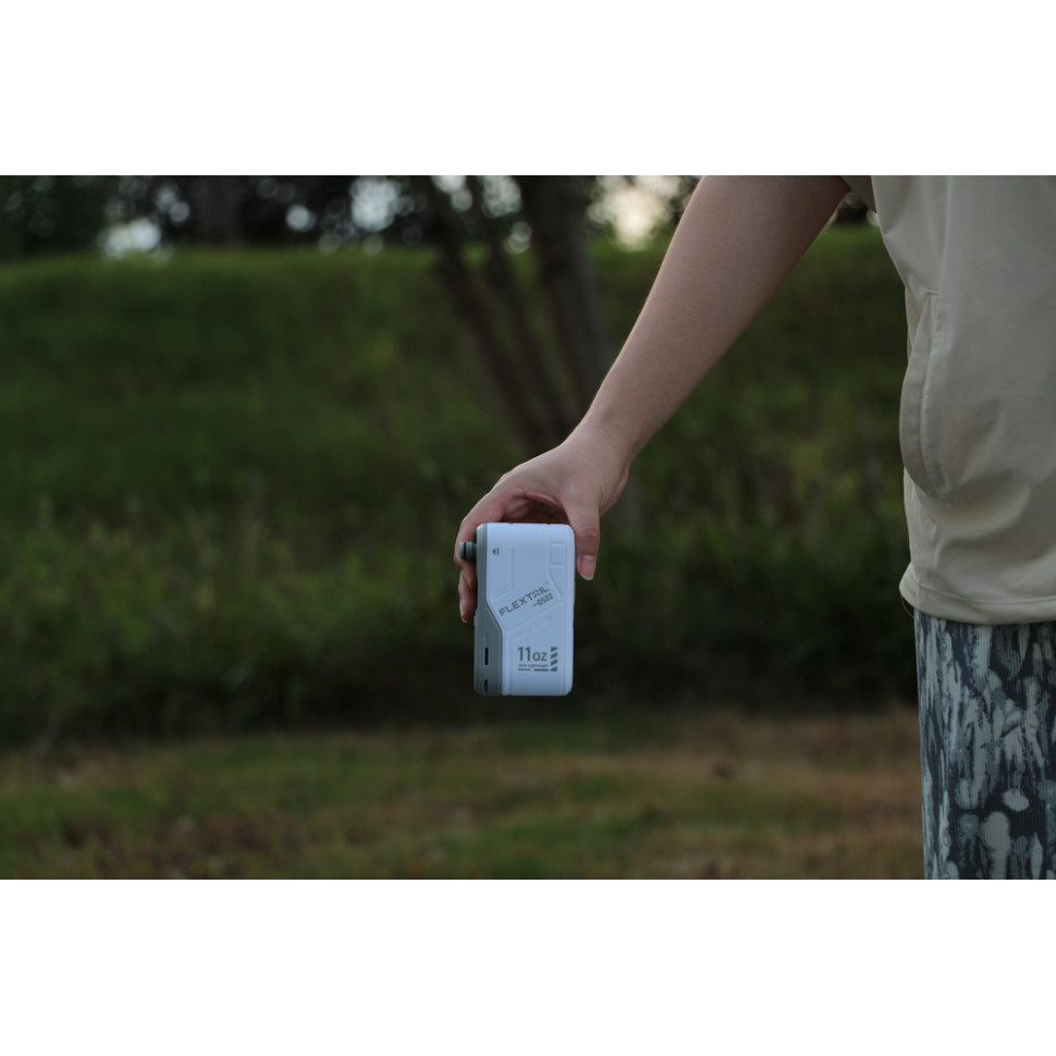 портативний акумуляторний душ Flextail; колір – білий; розміри – 120 х 69 х 40 мм; вага – 305 г; клас вологозахисту – IPX7; 2 режими потоку – 2.2-3 л/хв; час роботи – 70-110 хв від одного заряду; довжина шланга – 2.2 м; ємність акумулятора – 18.5 Вт·год; спосіб заряджання – порт USB-C (5 В/2 А); номінальна потужність – 16 Вт; гранична температура води – до 60°C; є фільтр з нержавіючої сталі 304 (знімний).