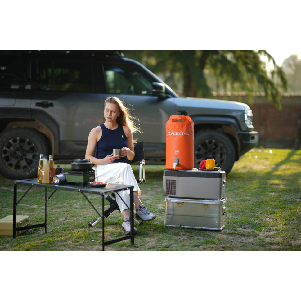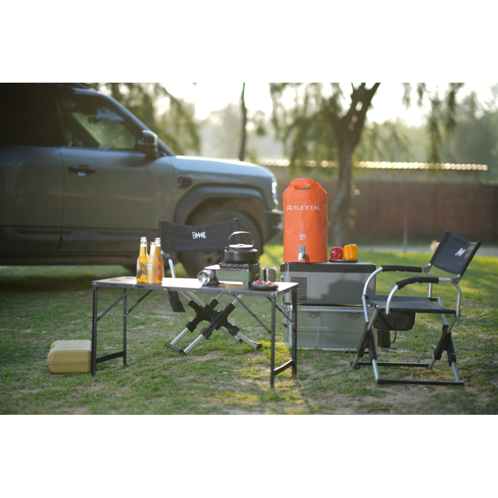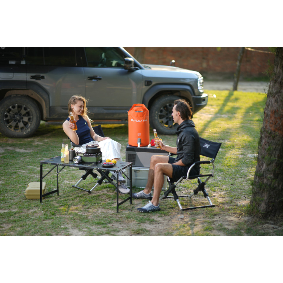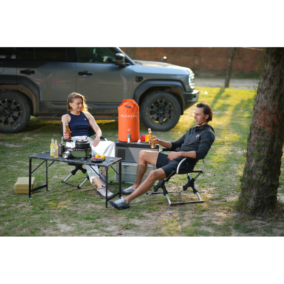 У парі з контейнерами Flextail кран доповнює базову конструкцію зі зручним клапаном видачі води, внаслідок чого система працює як компактна мийка без стаціонарних комунікацій. Це особливо корисно в автокемпінгу, на дачі, пікніках та пляжі, де потрібна контрольована подача води з переносної ємності.