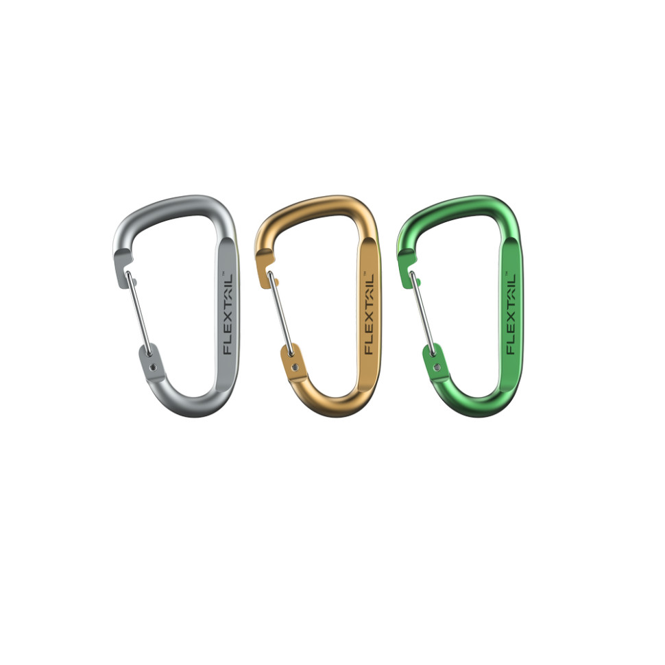 Набір карабінів алюмінієвих Flextail, 3 шт (сірий, помаранчевий, зелений)