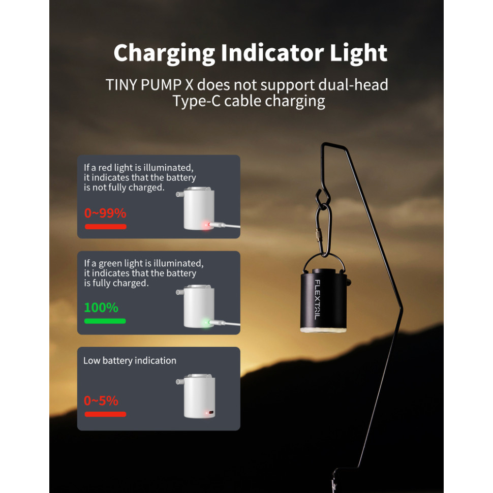 Flextail Tiny Pump X — це функціональний пристрій 3-в-1 для накачування та здування виробів, а також м'якого освітлення невеликого простору.