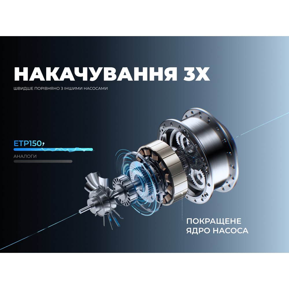 Енергосистема на базі трьох Li-ion елементів (16.65 Вт·год) забезпечує до 20 хв безперервного накачування. Це дає змогу пристрою працювати значно довше за аналоги, що особливо важливо під час тривалих подорожей або при обслуговуванні кількох транспортних засобів поспіль.