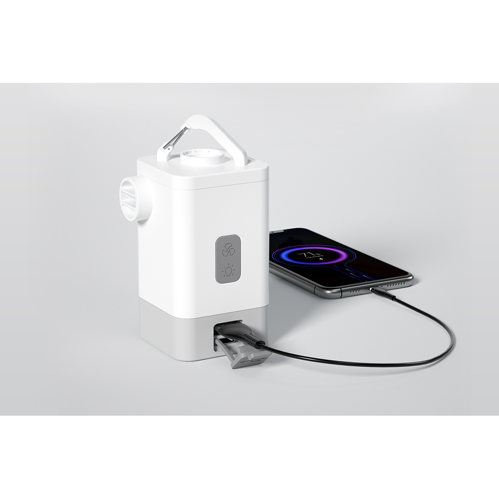 Пристрій Flextail Max Pump 2 Plus — це модель 4 в 1! З її допомогою ви швидко надуєте та здуєте матраци, килимки та інші надувні вироби, роздмухаєте багаття та освітите місце для відпочинку. Але це ще не все! Прилад також здатен заряджати дрібні гаджети, підтримуючи рівень заряду необхідної техніки для комфортної подорожі!