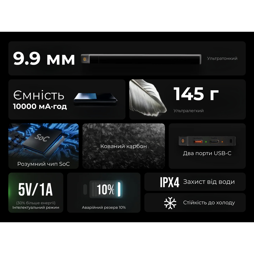 Описание УМБ Flextail powerbank Zero Power 10000 mAh, 22,5W, 3A, Fast Charge: