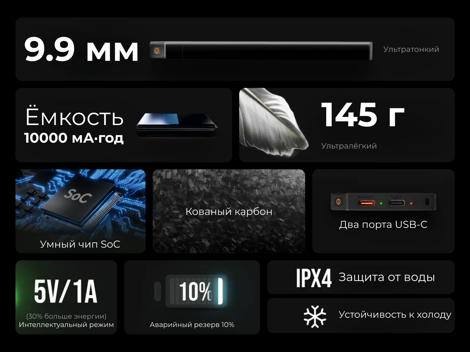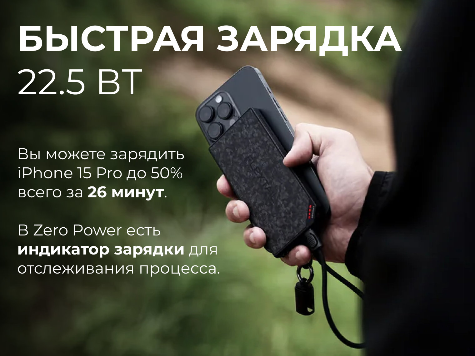 В основе Zero Power лежит интеллектуальный чип SoC и кобальтовая батарея высокой плотности. Такая технология передает энергию смартфону с минимальными потерями на нагрев. Это обеспечивает максимальную эффективность каждого заряда и надежную работу устройства даже в морозы до -10°C.
