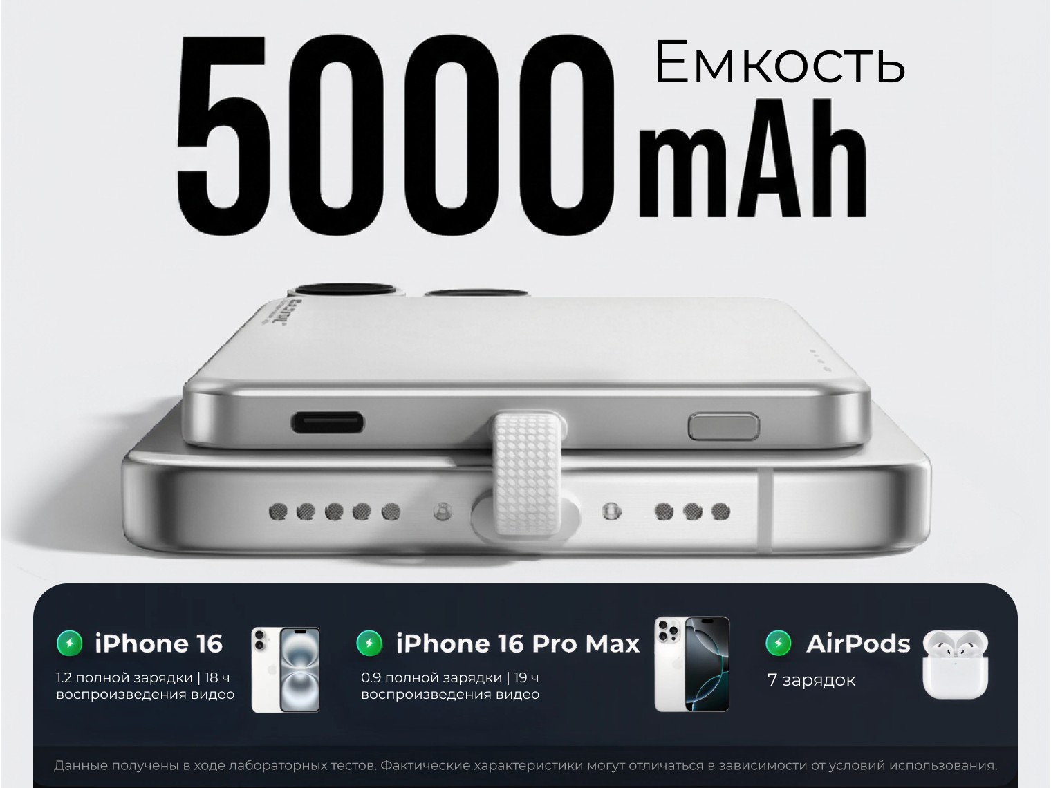 Повербанк подходит для всех моделей iPhone (начиная с 12-й серии), а также для наушников AirPods и Android-смартфонов, поддерживающих магнитное крепление MagSafe.