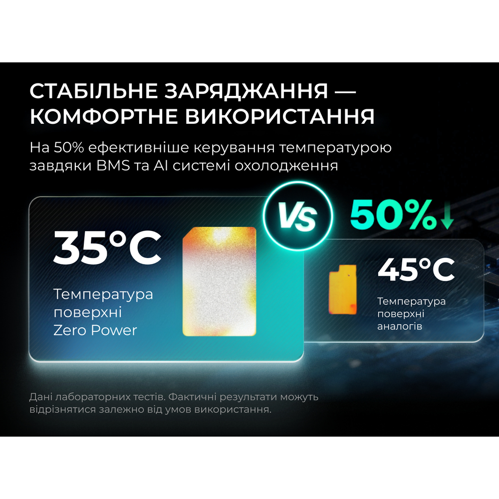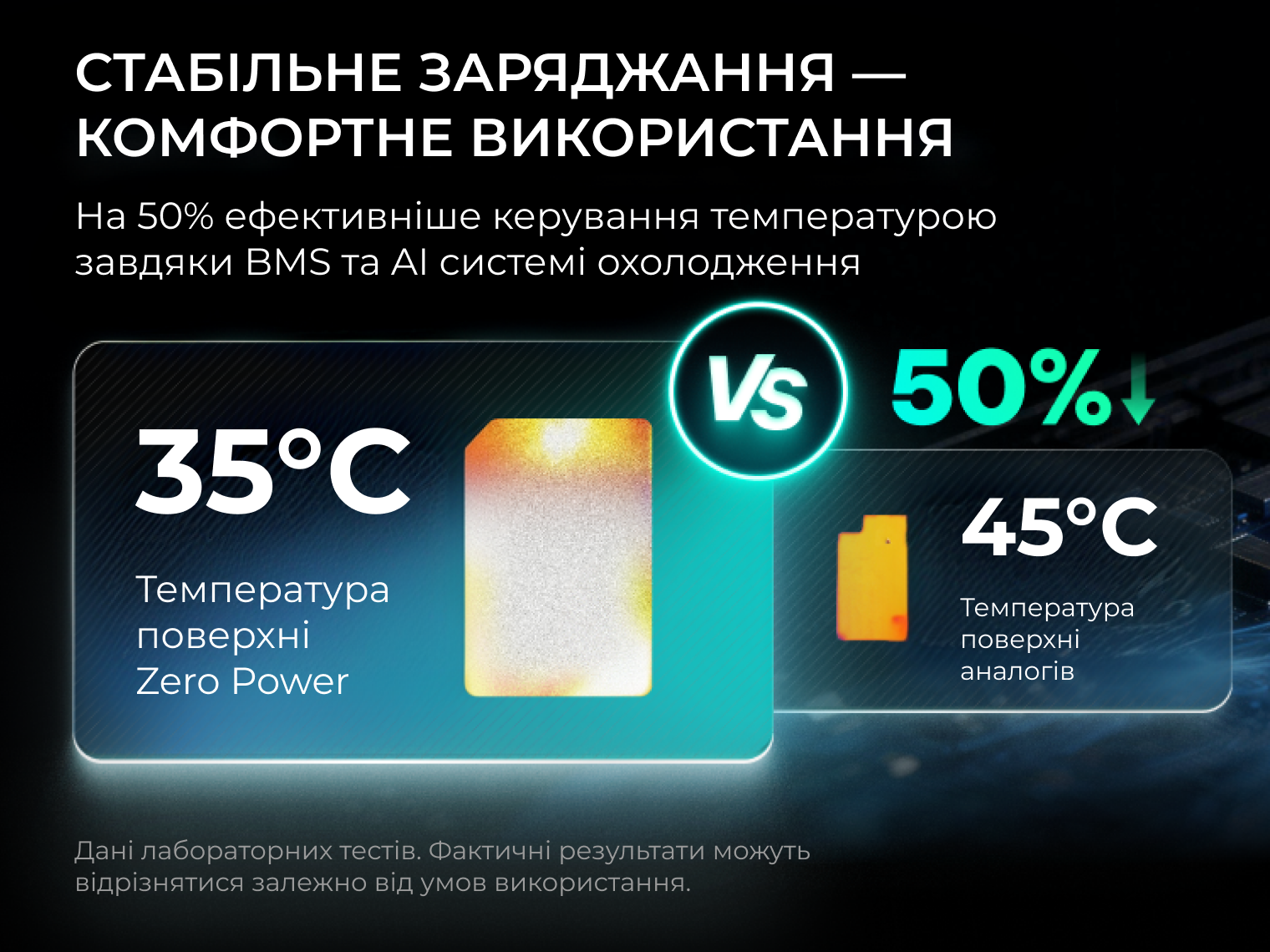 Інтелектуальна плата керування (BMS) захищає від перенапруги, глибокого розряду та короткого замикання, а функція Pass-through дозволяє заряджати повербанк одночасно з підключеним смартфоном.