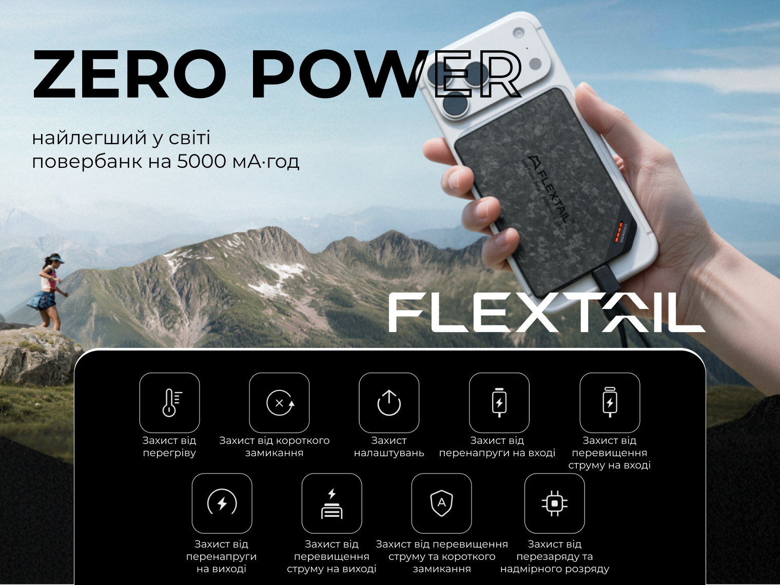 Опис УМБ Flextail powerbank Zero Power 5000 mAh, 22,5W, 3A, Fast Charge: