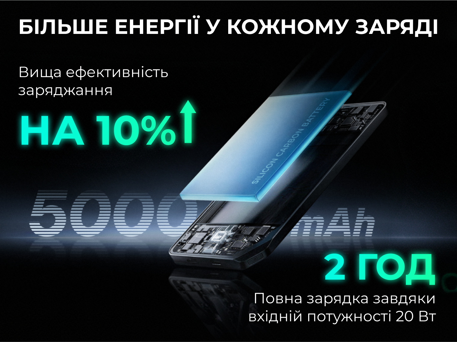 - Система охолодження AI Cooling. У поєднанні з теплопровідністю вуглецевого корпусу система підтримує температуру близько 35 °C. Це забезпечує стабільну роботу пристрою без перегріву.