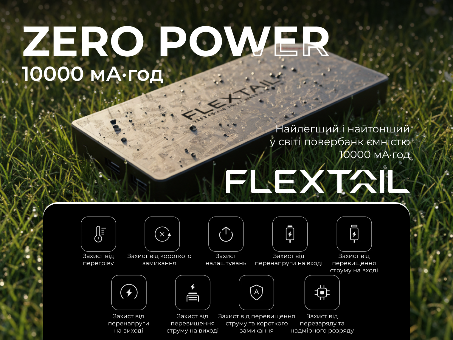 Опис УМБ Flextail powerbank Zero Power 10000 mAh, 22,5W, 3A, Fast Charge: