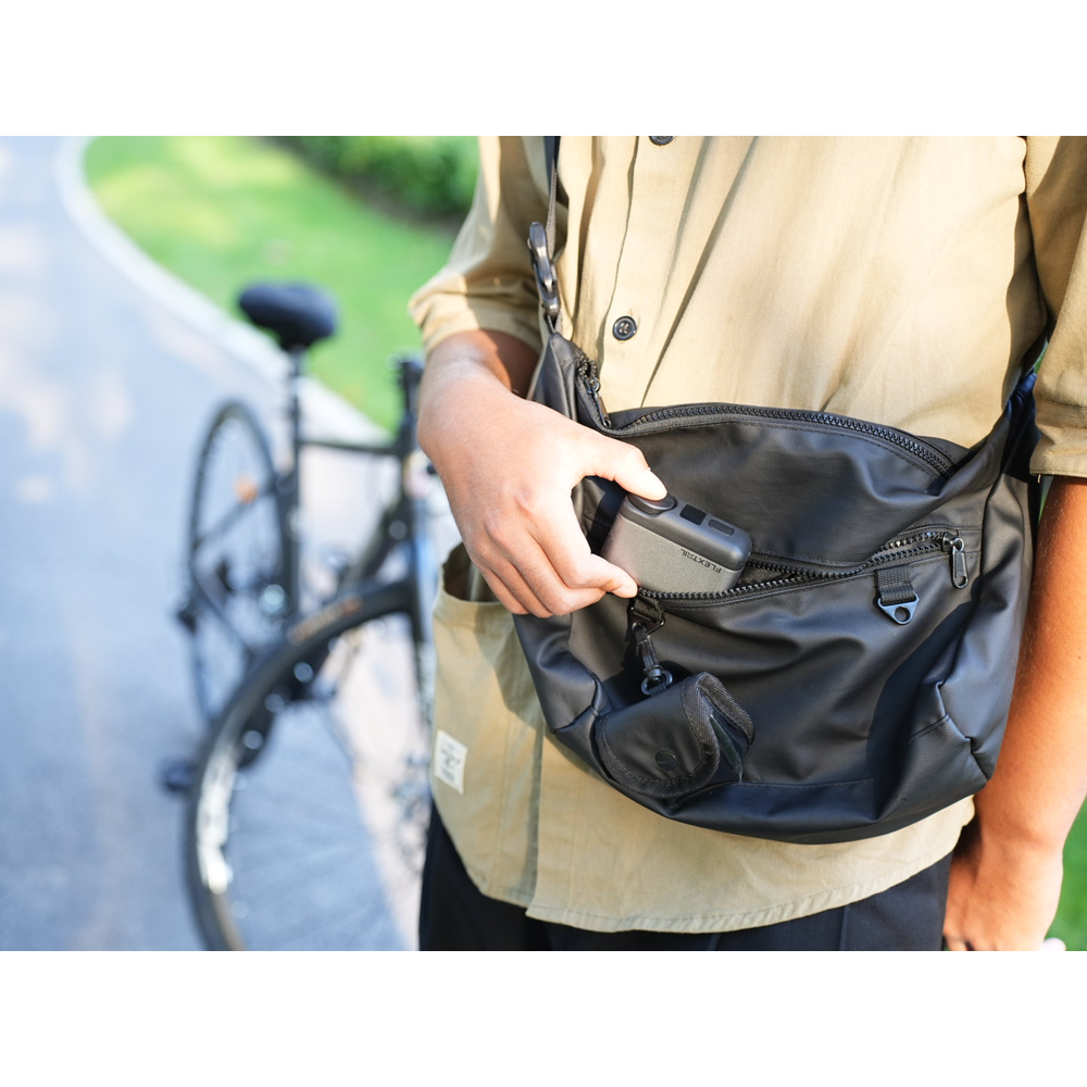 Корпус відрізняється компактними розмірами — лише 77 х 53 х 32 мм — тому він легко поміщається у кишеню, рюкзак або велосипедну сумку. Для додаткового захисту на відкритому повітрі в комплекті є водонепроникна сумка.